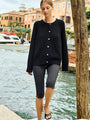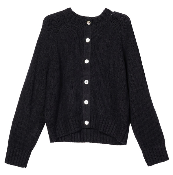 The Cecile Cardigan in black is an oversized cable knit cardigan featuring tortoise shell buttons.