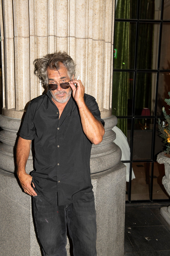 The Gio Shirt in black is a men's short-sleeve button-down cotton shirt.